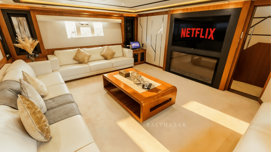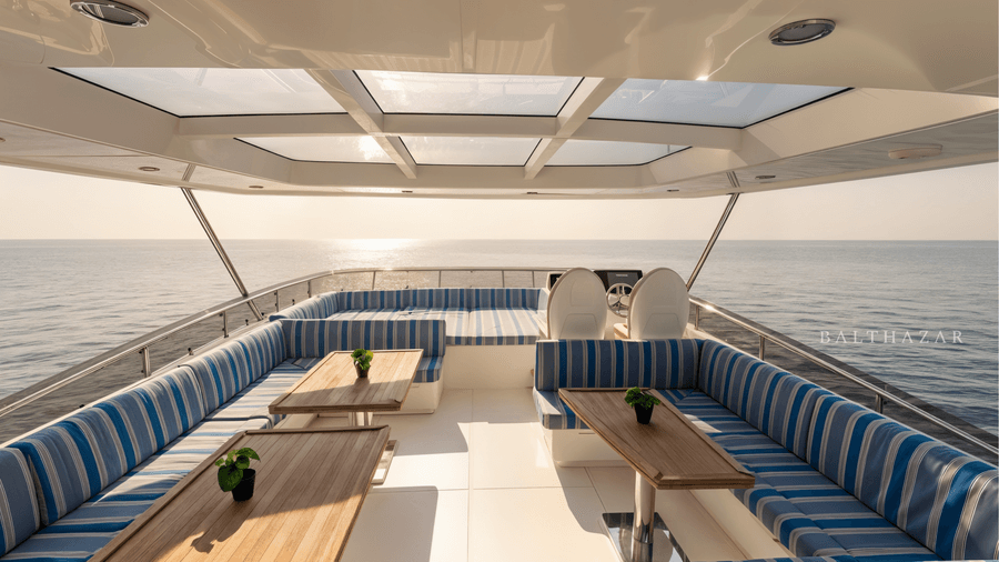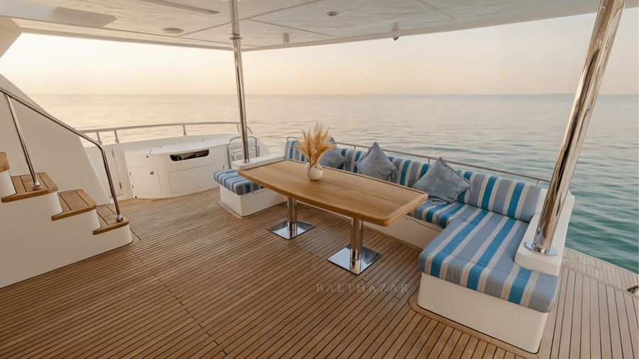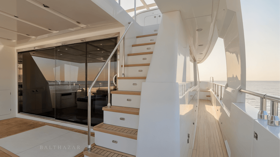 From the first step aboard, Elyon reveals her generous proportions and fluid design. Wide walk-around decks and multiple lounge areas create an inviting flow between spaces, encouraging guests to explore, mingle, and unwind under the open sky.
